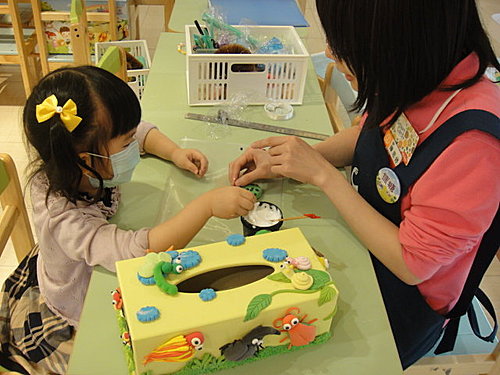好厲害那一天我們做兩個多小時,面紙盒就完成囉!