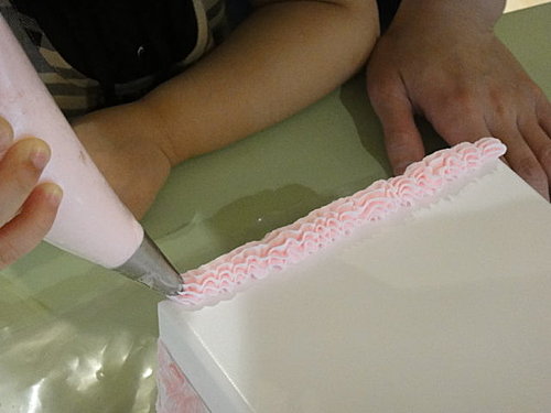老師牽芷妘的手擠奶油